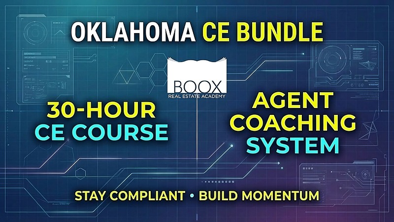 BundleComplete all 30 hours of required Oklahoma Real Estate Continuing Education designed to save you time and keep you compliant. PLUS, free agent coaching included for as long as you remain enrolled!